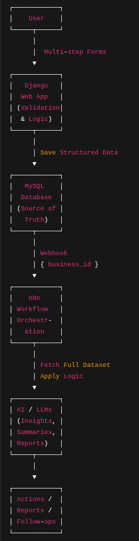 Modern AI applications are no longer just about prompts and models. The real value comes from how data is collected, orchestrated, enriched, and acted upon across systems. In this project, I built a production-ready workflow that combines Django, MySQL, n8n, and AI/LLMs into a clean, scalable architecture.